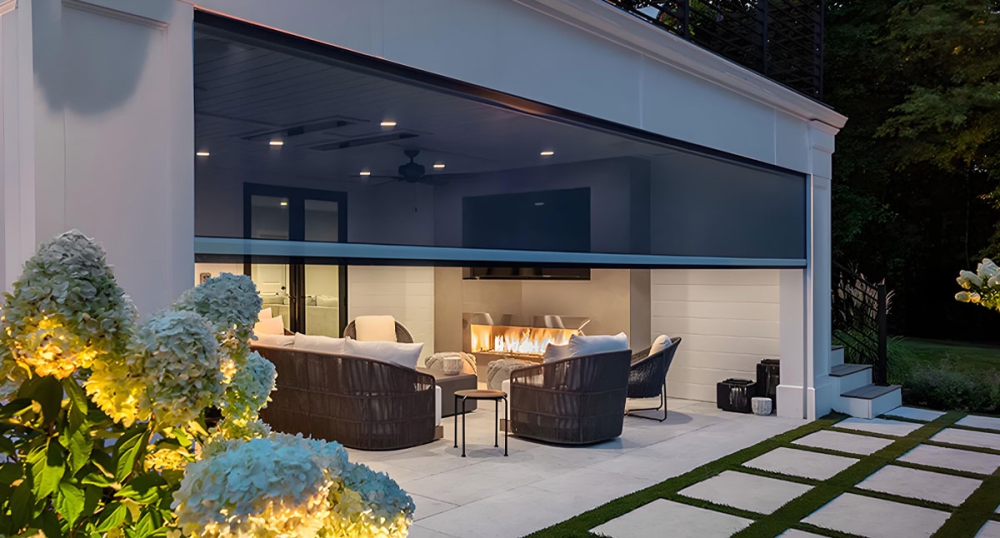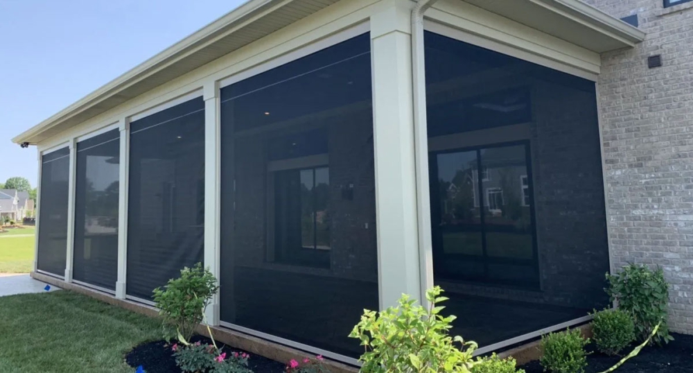 Covered Patios and Porches: Add motorized screens to covered patios and porches for sun protection, insect control, and year-round outdoor comfort.
