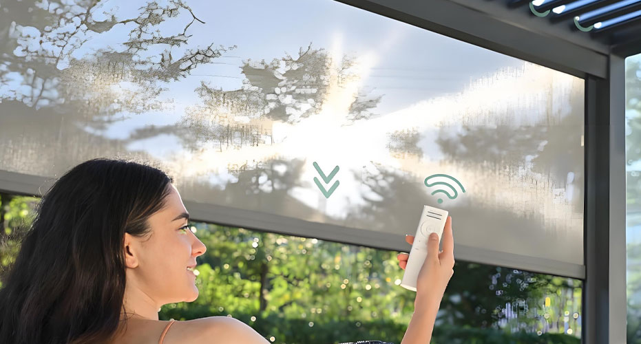 This smart screen system is ideal for semi-open areas like terraces, pergolas, balconies, pool areas, and outdoor kitchens, offering: