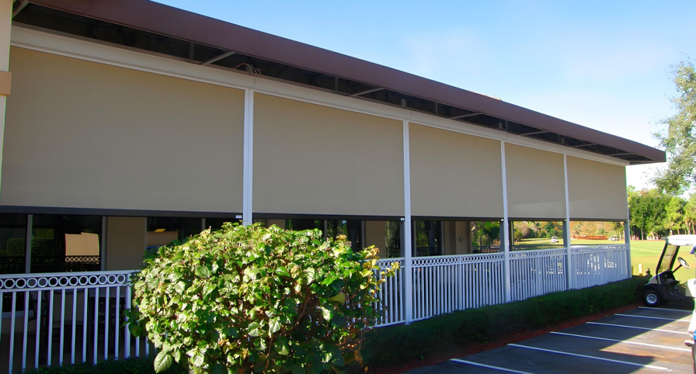 Restaurant Cafe: Create a more inviting and weather-ready outdoor dining space for your restaurant or café with motorized screens, ideal for maximizing seating and atmosphere.