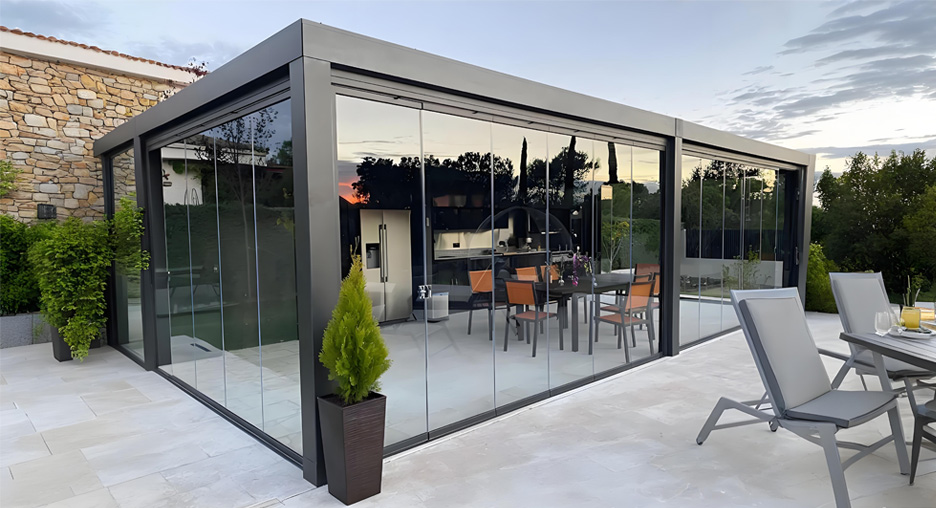 Glass Walls: Modern and stylish, weather-resistant, with enhances privacy protection, perfect for any weather conditions.